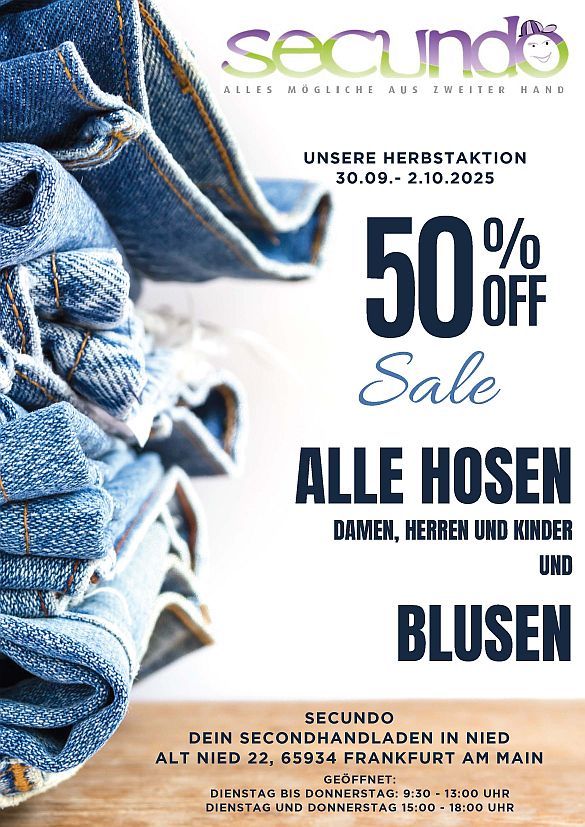 In dem modernen Second-Hand-Laden in Frankfurt Nied werden hochwertige Kinder-, Damen- und Herrenbekleidung, Haushaltswaren, Spielsachen und andere Artikel zu außerordentlich niedrigen Preisen abgegeben.